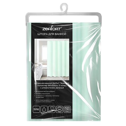 Штора для ванной Zenfort "Жаккард" полиэстер 180х200 см, 12 колец, с утяжелителем, зеленый