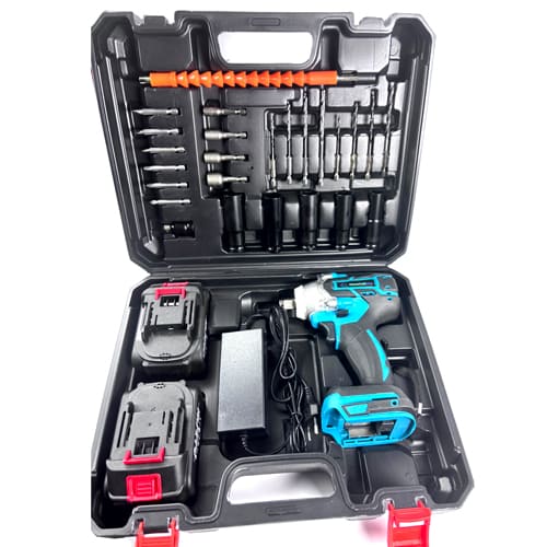 Гайковерт аккумуляторный ударный, 2 АКБ, набор сверл, зарядник, кейс