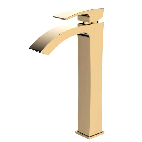 Смеситель для умывальника высокий с каскадным изливом с гайкой Ledeme K11114Y-7 золотой сатин