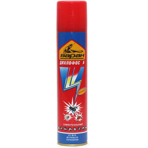 Дихлофос Варан аэрозоль Препарат без запаха с повышенным содержанием активного компонента, для уничтожения летающих насекомых (мух, бабочек, моли комаров), обладающий мгновенным и остаточным действием. Средство безопасно для людей. Не оставляет следов на поверхности.