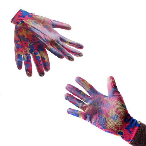 Перчатки нейлоновые облитая ладонь цветочные, 12/1200
