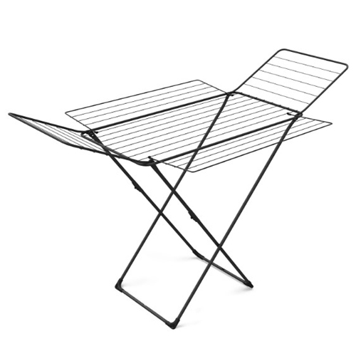 Прочный металлический каркас и струны с антикоррозийным покрытием. Дополнительные распашные створки. Пластиковые наконечники на опорах для предотвращения скольжения и защиты от повреждений. Удобный механизм складывания. Компактное хранение.