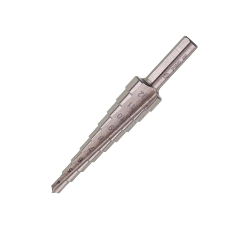 Ступенчатое сверло предназначено для получения отверстий различного диаметра без перестановки режущего инструмента. На каждой ступени есть маркировка фактического диаметра. Сверло изготовлено из быстрорежущей инструментальной стали с добавлением 5% кобальта для повышения термостойкости и износостойкости. Количество ступеней — 9 шт. Ход — 1 мм.