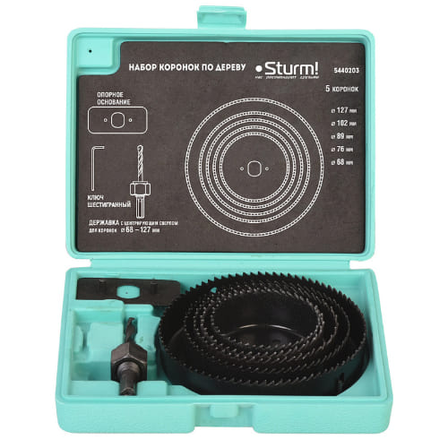 Набор коронок по дереву 8 предметов 68, 76, 89, 102, 127 мм кейс STURM 5440203