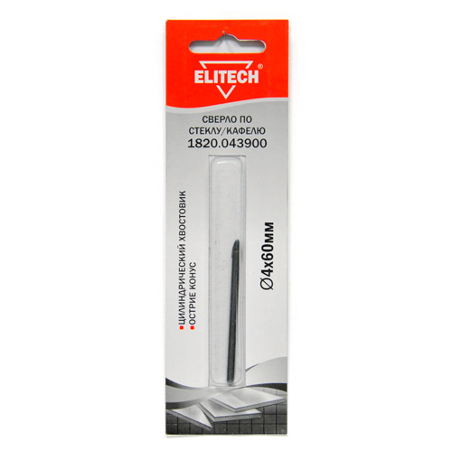 Сверло для стекла кафеля, 4х60 мм, хв-цилиндр, острие конус, блистер, ELITECH