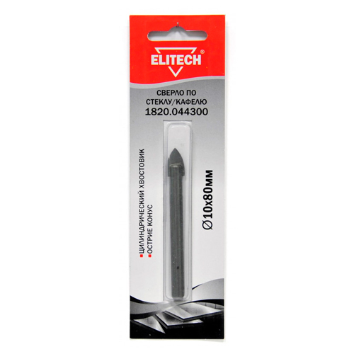 Сверло для стекла кафеля, 10х80 мм, хв-цилиндр, острие конус, блистер, ELITECH