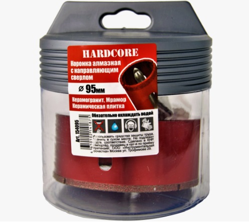 Коронка алмазная по керамограниту и мрамору "Hardcore" с направляющим сверлом 95 мм