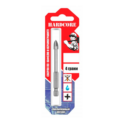 Сверло по керамике и стеклу "Hardcore" 12 мм, 4 грани