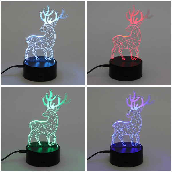 Светильник ночник "3D-Олень" на пластиковой подставке, с включателем USB