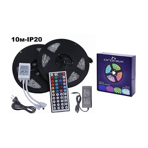 Набор LED лента RGB Огонек OG-LDL03, 10 м, IP20, блок, пульт