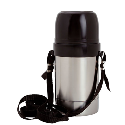 Термос «Дорожный» 0,5 л одинаково хорош для напитков и готовых блюд. Он имеет универсальную горловину с двойной пробкой, которая обеспечивает герметичность и удобную подачу содержимого. Крышка может использоваться как чашка. В комплект входит прочный ремень с возможностью регулировки для удобной переноски термоса.