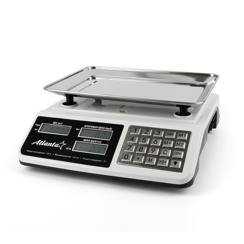 Весы торговые электронные настольные Atlanta 40 кг, ЖК-дисплей, белый