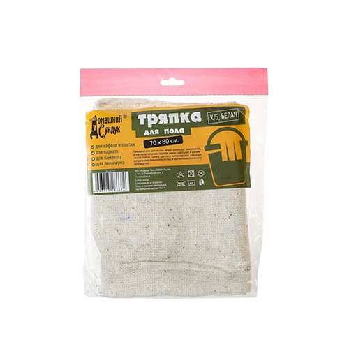 Тряпка для пола из хлопка, в индивидуальной упаковке 70*80 см Домашний Сундук ДС-156, белая