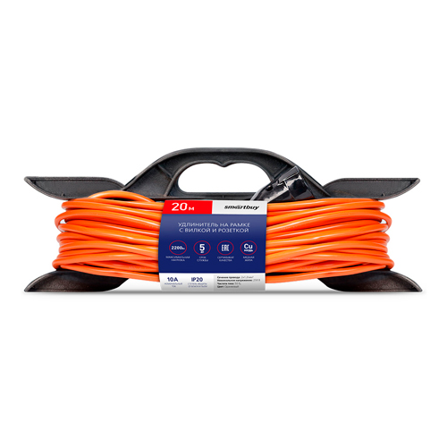 Удлинитель на рамке с вилкой и розеткой 10А, 20 метров 2х1,0 мм², оранж., IP20 (SBE-10-1-20-F)/6