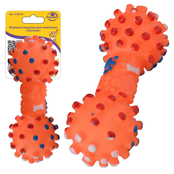 Игрушка-пищалка для животных "Гантеля" Общая длина 11 см.