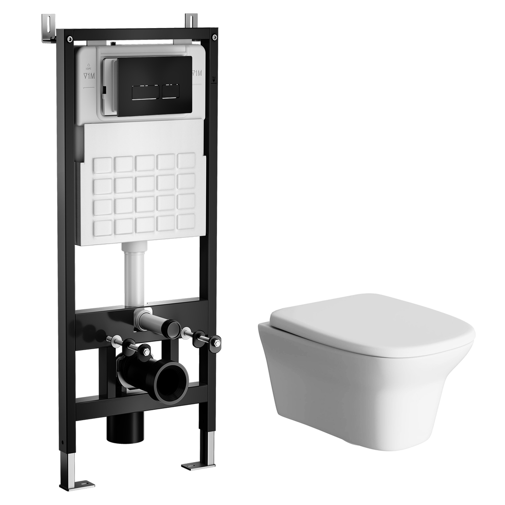 Комплект WAVE Система инсталляции МЕХАНИКА+унитаз "STONE"+прямоугольная кнопка V2 черная