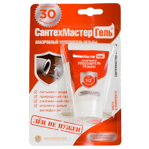 Гель Сантехмастер Красный, тюбик 15 г, блистер 04021 — это анаэробный герметик для резьбовых соединений из черного металла. Этот гель отлично подходит для сверхпрочной фиксации и герметизации резьбы и фитингов в трубопроводах, собранных с использованием черных металлов. Применяется для соединений диаметром от 1".