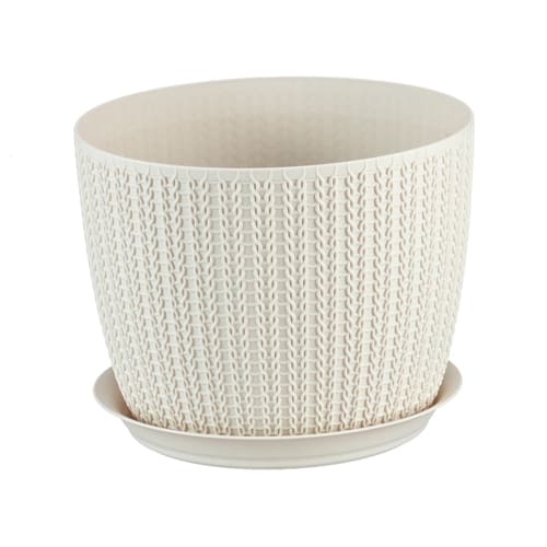 Кашпо 4.5 л IDEA ВЯЗАНИЕ М 3122, 210 мм, с поддоном, белый ротанг