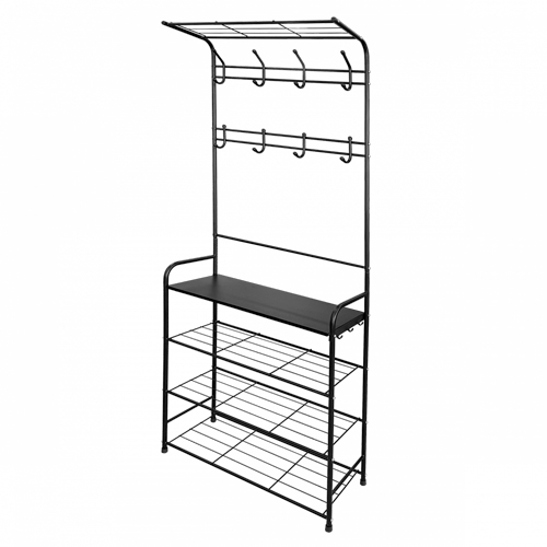 Вешалка напольная в прихожую Константа 2 с полкой, чёрный