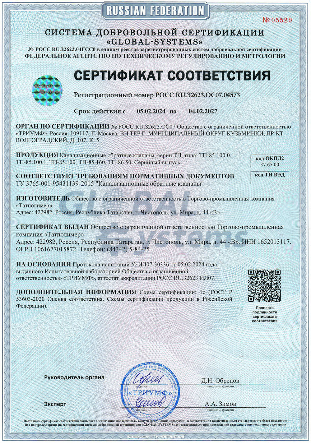 Клапан обратный канализационный устанавливается в местах ввода в общую канализационную систему для предотвращения обратного потока сточных вод.