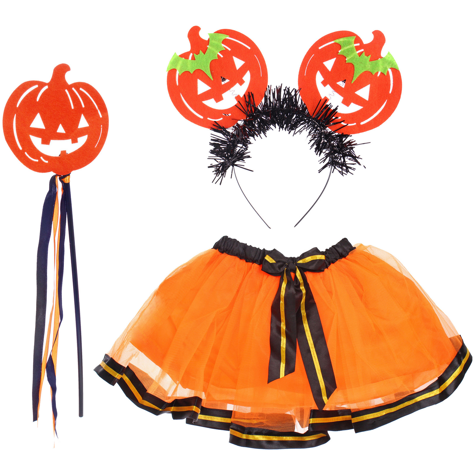 Набор карнавальный "Helloween - Веелые тыквы" (ободок,юбка, палочка)