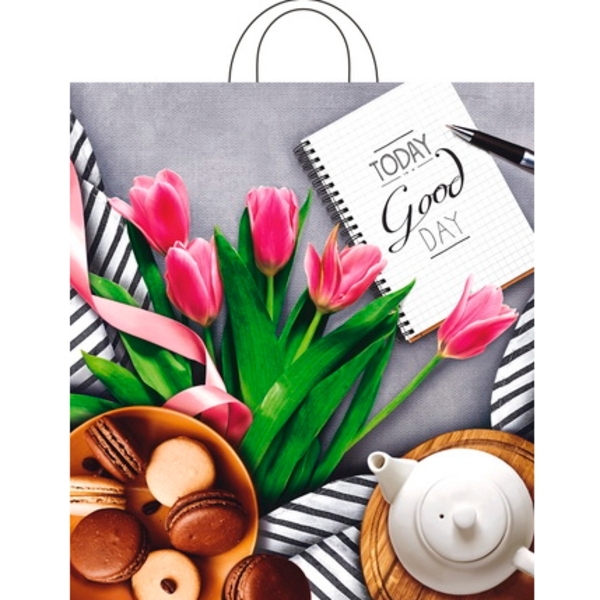 Пакет ПЭ с петлевой ручкой 38х42+6см (40) ПНД (Завтрак) Интерпак (х25/500)