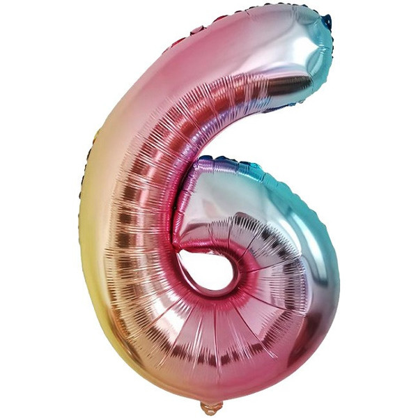 Шар фольгированный 81 см “Цифра 6” (радуга)