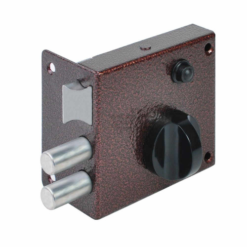 Замок накладной Омега ЗН-3 с защелкой, предназначен для установки в деревянные и стальные двери толщиной до 45мм. Засов из двух стальных ригелей диаметром 14мм. Замок снабжен дополнительной автоматической защелкой, которая отводится внутренней ручкой или ключом. Закрывание и открывание изнутри производится вертушкой, снаружи ключом. Замок имеет двойную блокировку: первая - блокировка от открывания ключом снаружи, путем доворота вертушки в крайнее положение при открытом ригеле, вторая - блокировка защелки с помощью фиксатора, как в открытом, так и в закрытом положении.
