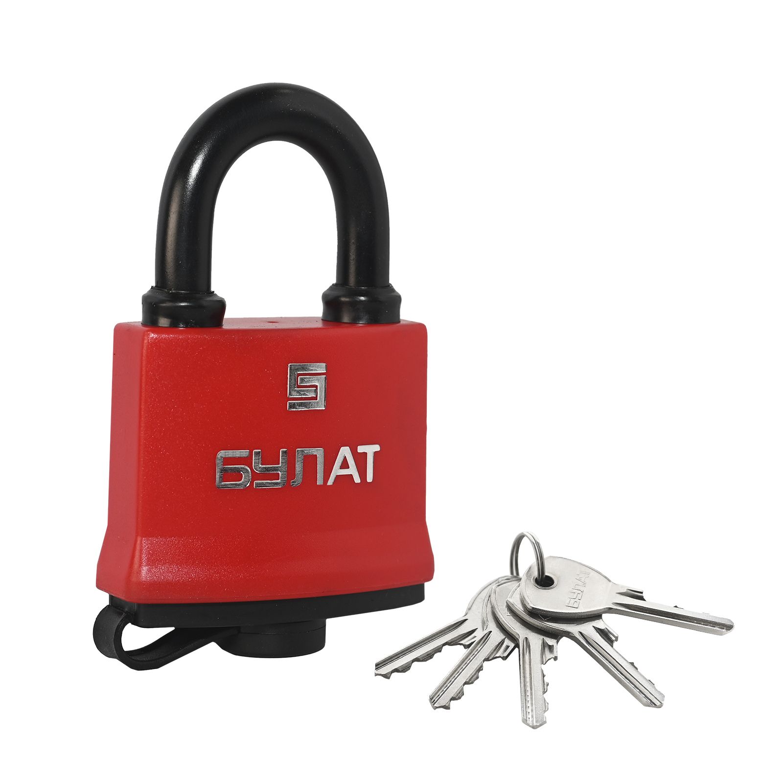 Замок навесной «БУЛАТ» предназначен для запирания, распределительных щитов, почтовых ящиков, гаражей, складов, подвалов и прочих помещений. Замок запирается автоматически при нажатии на скобу без использования ключа. Пластиковый кожух защищает замок от внешнего воздействия окружающей среды. Замок обладает длительным сроком эксплуатации. Гарантийный срок 5 лет с момента продажи через розничную сеть.
