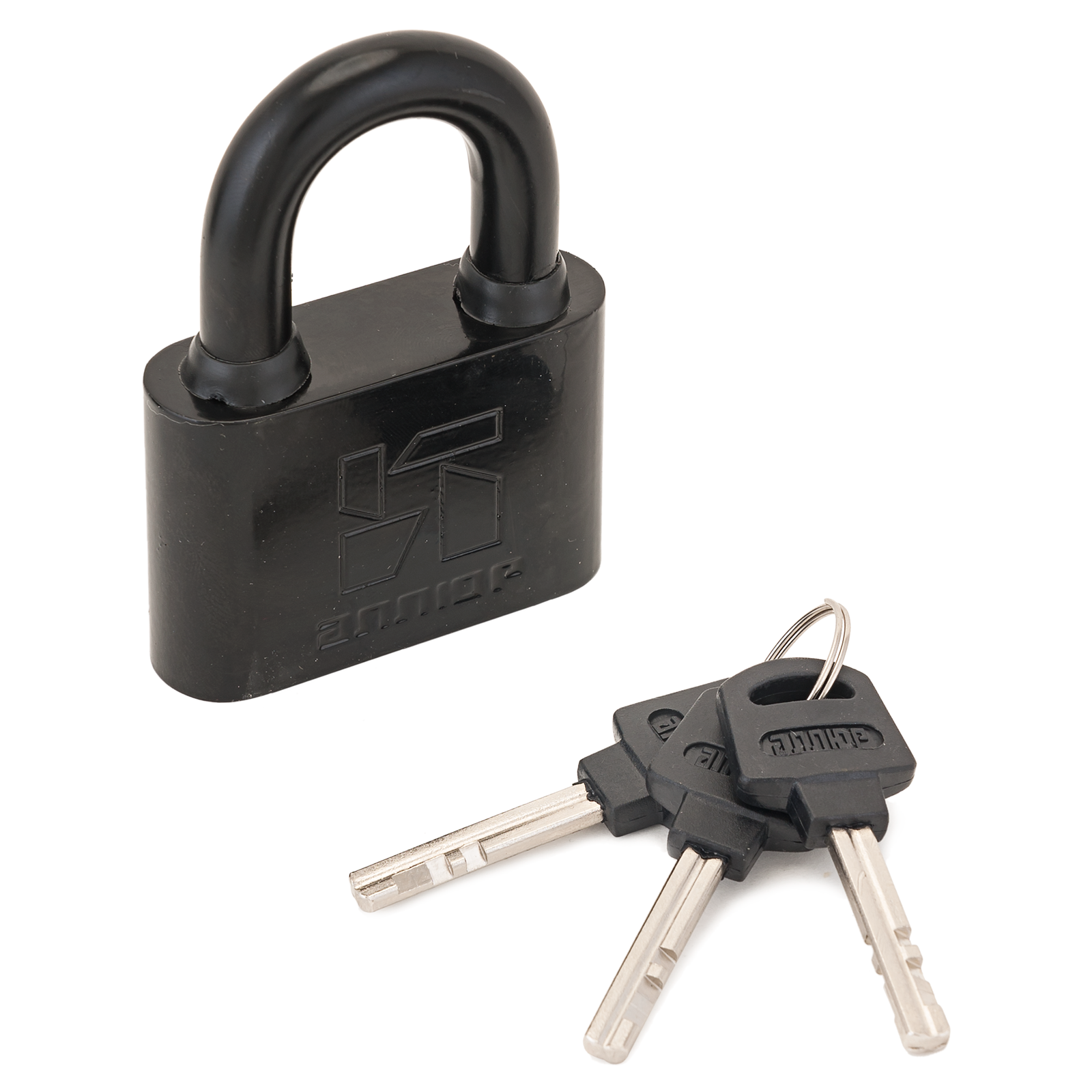 Материал корпуса - сталь, покрытие - черная полимерная краска, дужка - закаленная сталь.
