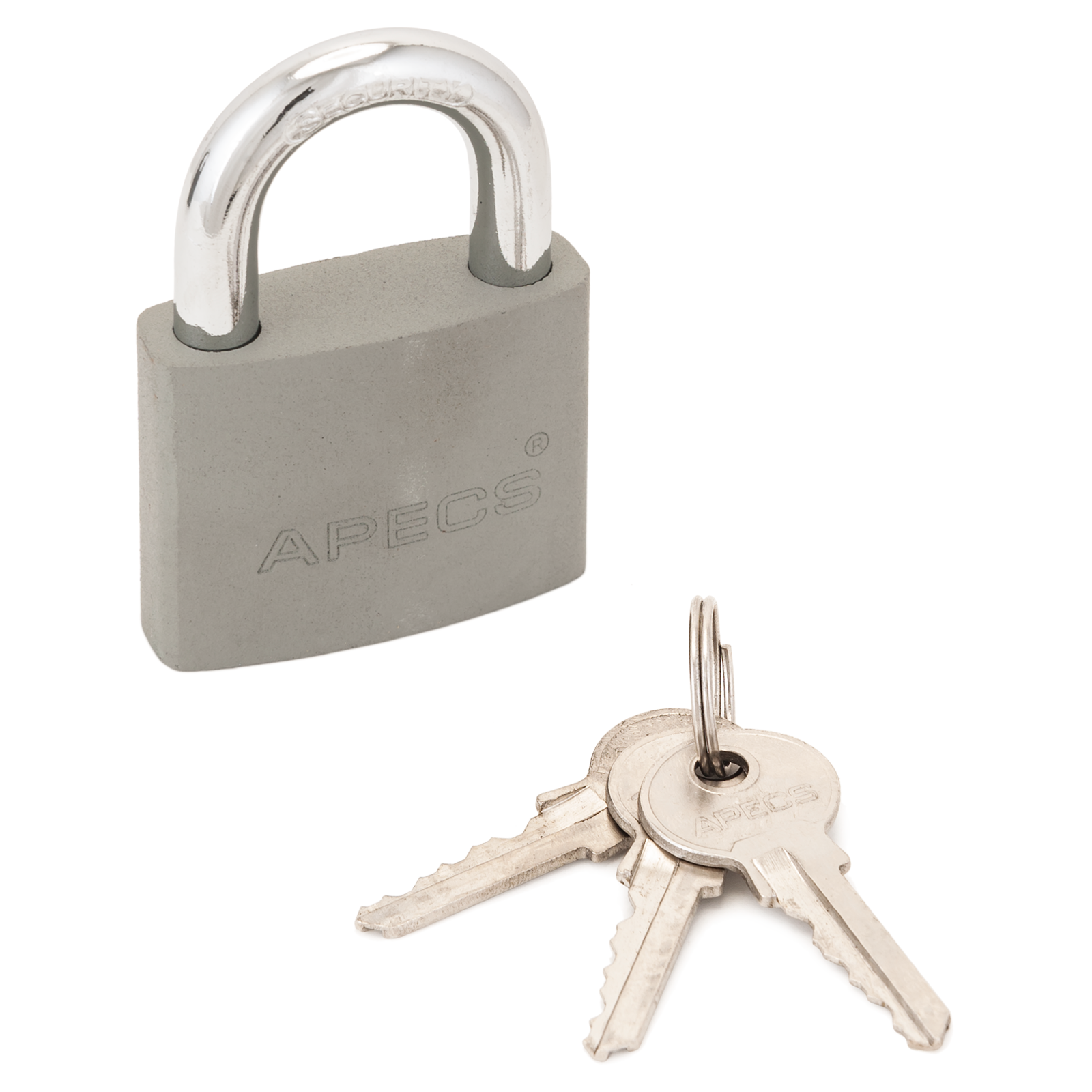 Замок навесной цилиндровый общего применения. Материал корпуса - чугун, покрыт краской. Дужка диаметром 10 мм; проем дужки - 33 мм по высоте и 32 мм по ширине. Габариты замка - 60х91 мм. Замок имеет функцию автоматического закрывания. Комплектуется 3 английскими ключами.
