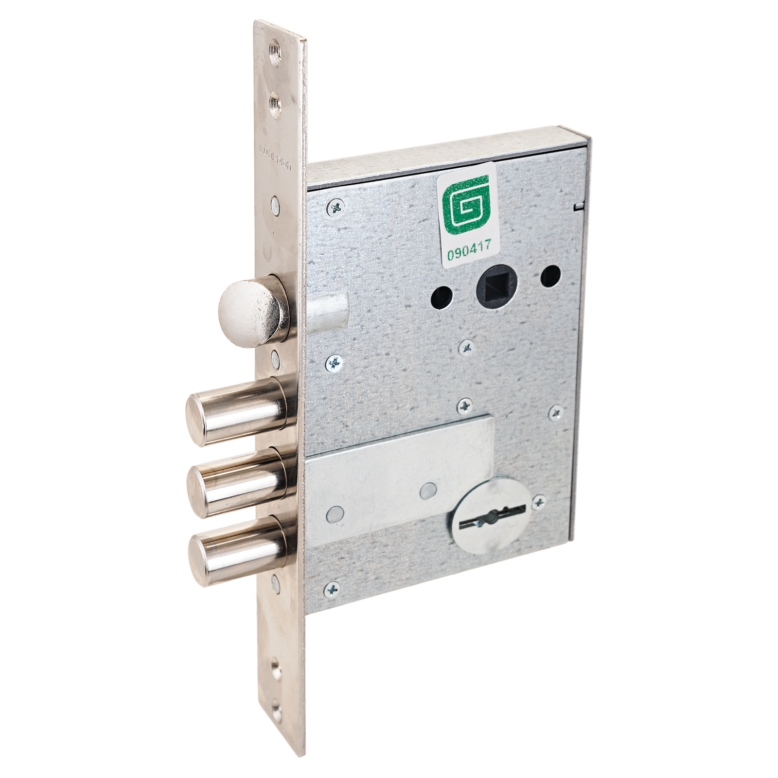 Замок врезной сувальдный с защелкой для металлических дверей. Замок имеет засов из трех цилиндрических ригелей из стали диаметром 15,8мм, с максимальным вылетом 26мм, и защелку диаметром 20мм. Удаление ключевого отверстия 65мм. Межосевое расстояние 77мм. Толщина полотна двери: 40-75 мм. Количество оборотов ключа – 2. Габариты замка - 138х97,5х26 мм. Комплектация - 4 ключа. Переворот защелки выполняется без разбора замка. Бронепластина надежно защищает от высверливания. Дополнительно защищен от самоимпрессии и декодирования.