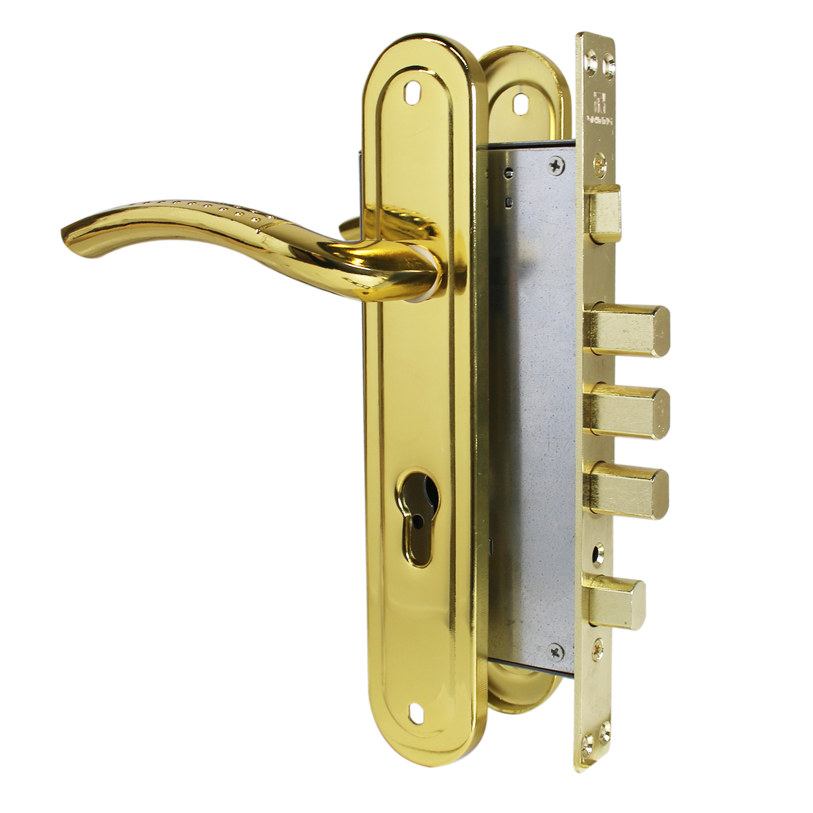 Замок для металлических дверей с усиленной защелкой и ночной задвижкой. Цилиндровый механизм в комплект не входит - приобретается отдельно, в зависимости от толщины двери. Корпус замка - материал сталь, ручки - сталь, алюминиевый сплав.