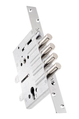 - Представленный замок оснащен засовом, который состоит из четырёх штырей, обладающих диаметром 17,5 мм.