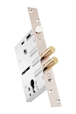 Имеет два ригеля и защелку , покрытые латунью, диаметр ригелей 16,9 мм, вылет 24мм.