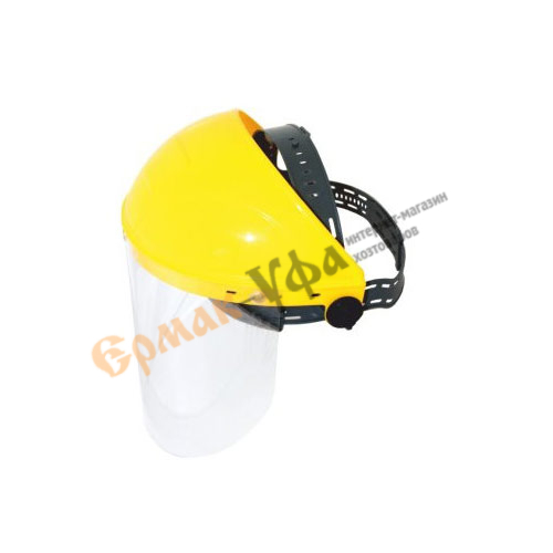Экран из оптически прозрачного термостойкого поликарбоната толщиной 1 мм, имеет скошенную книзу форму для увеличения эргономики изделия, наголовное крепление STANDART и козырек из термостойкой пластмассы.