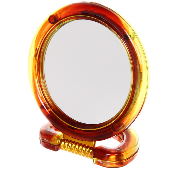 Зеркало настольное двухстороннее в пластиковой оправе "Янтарь" круг, подвесное d-9см (Стикер на минивложение12шт)