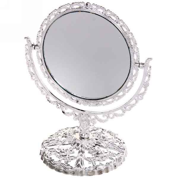 Зеркало настольное в пластиковой оправе "Версаль - Круг", цвет серебро, двухстороннее,18см