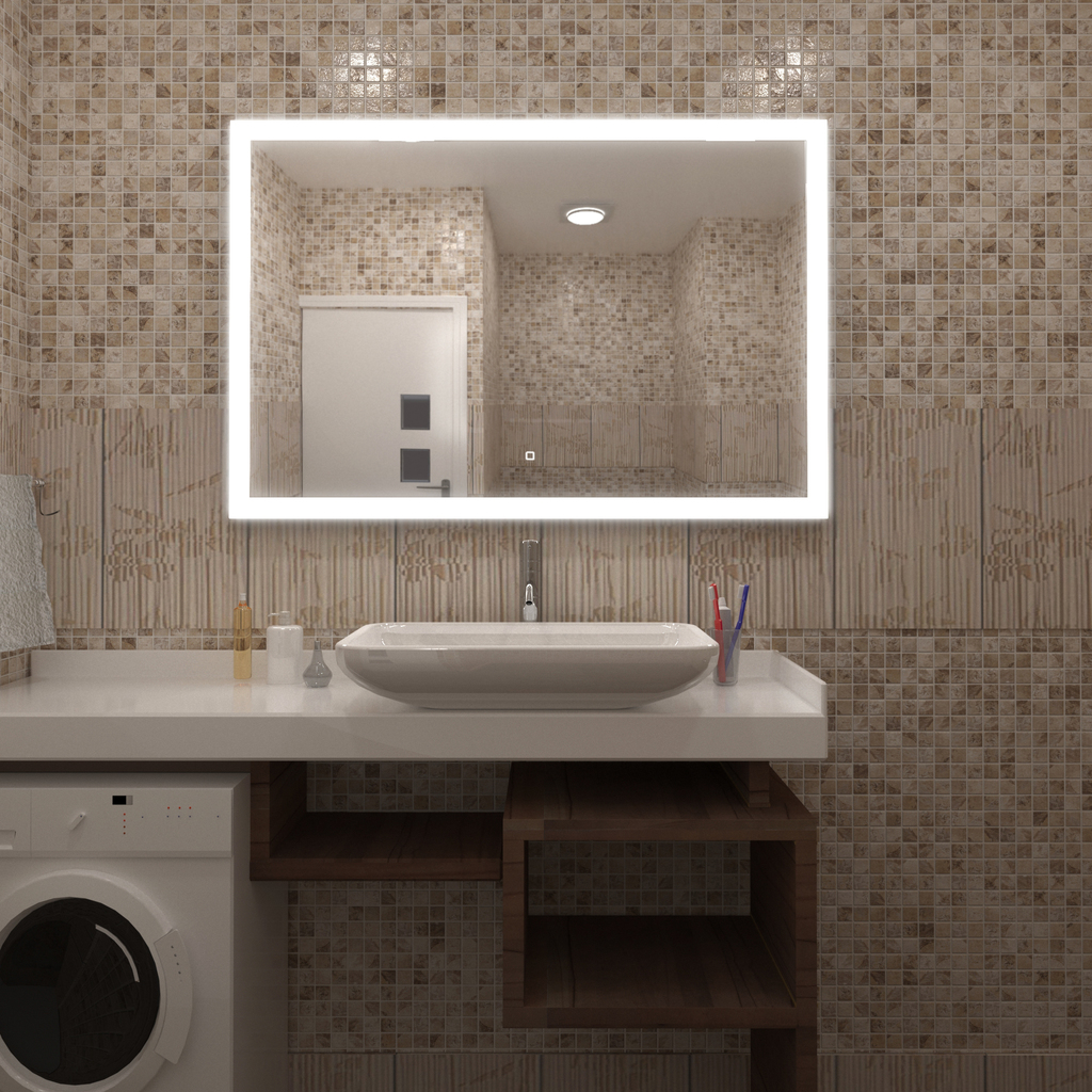 Зеркало с фронтальной LED-подсветкой и сенсороным выключателем. Световая рама расположена не по краям периметра, а несколько отступает от него. Мягкое свечение, регулируемое сенсорным выключателем с функцией диммера, смягчает графичность рисунка и всей формы и создаёт завораживающую, расслабляющую атмосферу. Благодаря этой находке довольно строгий, минималистичный дизайн не мешает зеркалу быть яркой акцентной деталью любого пространства: от строгой, упорядоченной классики и сдержанного минимализма до свободолюбивых эклектичных интерьеров.