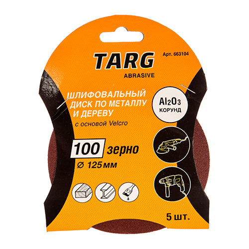 Круг абразив. 125 Р100, без отв. , Velcro TARG, 5шт/уп, 1/