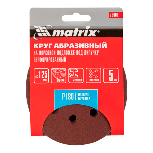 Круг абразив. 125 Р180 из шлиф. шк, на ворс. подл, перф. , цена за 5шт, Matrix, 1/200