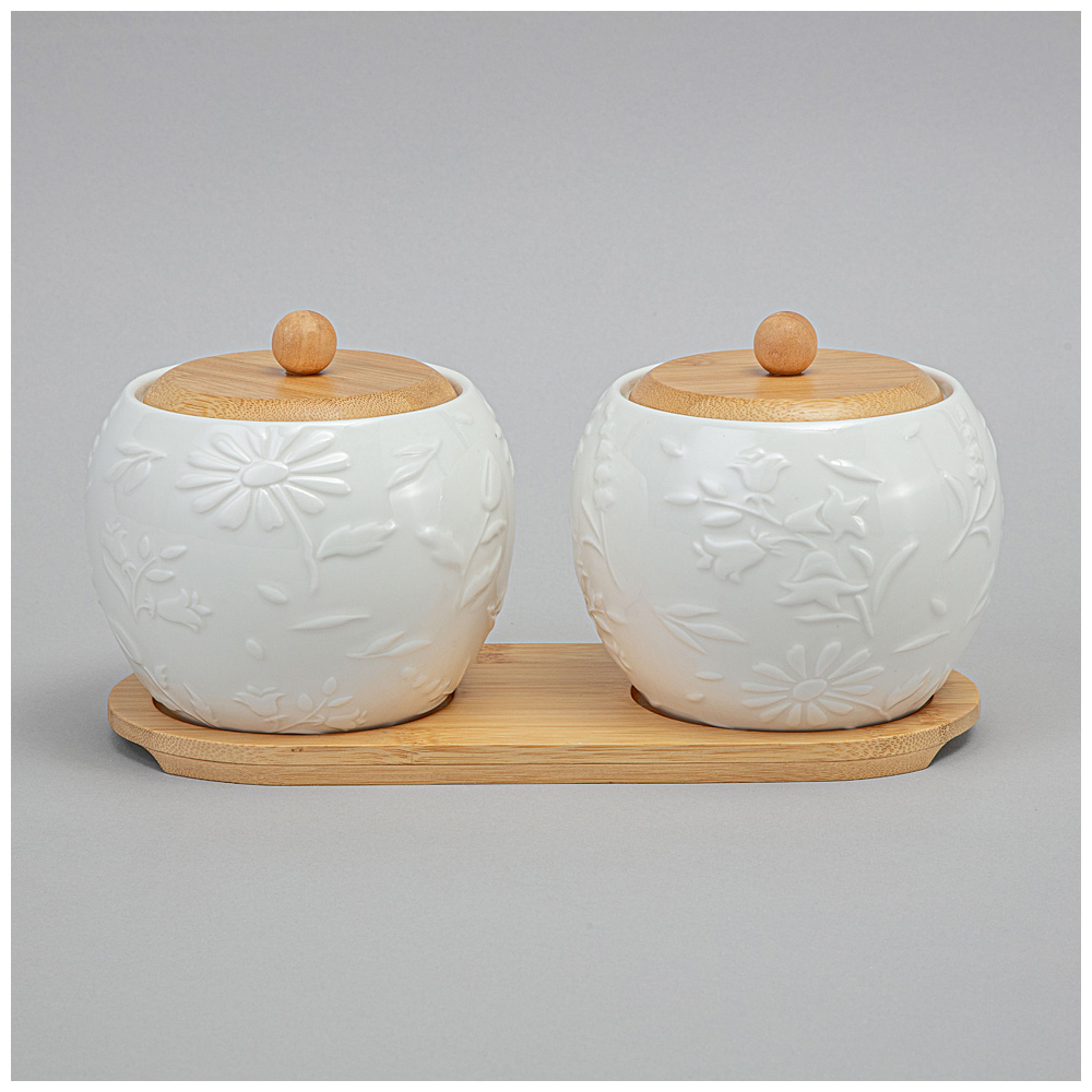 НАБОР БАНОК LEFARD, FLOWERS STORY, С ДЕР. КРЫШКОЙ НА ДЕР. ПОДСТАВКЕ 2 ШТ. 12*11 СМ 550 МЛ