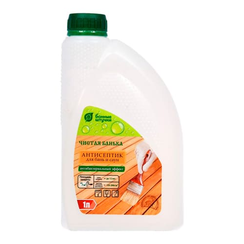Антисептик для бани и сауны Банные штучки Чистая банька,1 л предназначен для использование в банях и саунах.