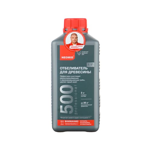 NEOMID 500 - отбеливающий и очищающий состав. Эффективно уничтожает деревоокрашивающие и дереворазрушающие грибы, удаляет серый налет, возвращает древесине естественный цвет, повышает ее сортность. Может быть использован для обработки паллет для хранения и транспортировки пищевых продуктов. Не изменяет структуру древесины, ее естественных свойств.
