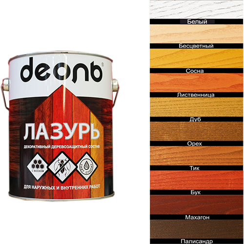 Пропитка деревозащитн. состав Лазурь, ДЕОЛЬ, бесцветный 2,7л, 1/4