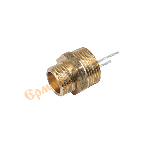 Ниппель переходной (наруж.-наруж.) — фитинг, представляющий собой изделие с наружной резьбой на обоих концах, с помощью которых он соединяется с другими участками трубопровода разного диаметра, резьба цилиндрическая трубная по ГОСТу 6357-81. Предусмотрен участок корпуса шестигранной формы, под гаечный ключ, что облегчает монтаж соединения.