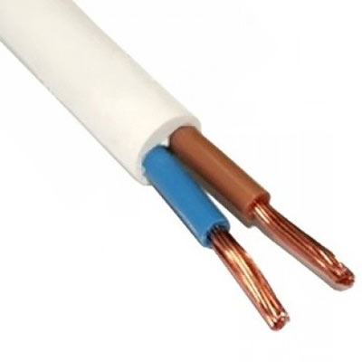 Представляет собой двужильный медный провод сечением жил 4 кв.мм, в изоляции из поливинилхлорида и оболочке белого цвета.