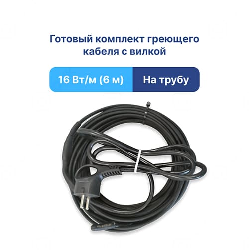 Кабель греющий саморегулирующийся с вилкой SRL 16-2, 6м, 1/