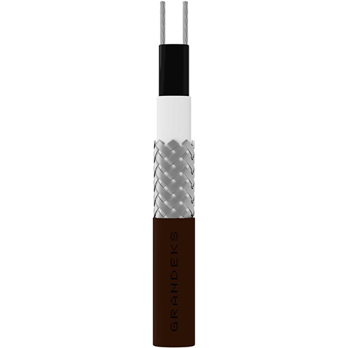 Саморегулирующийся греющий кабель Grandeks 17-2CR редназначен для защиты от замерзания и поддержания заданной температуры бытовых трубопроводов и резервуаров,