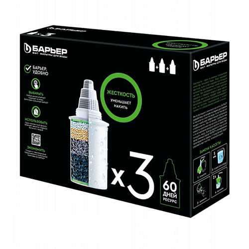 Кассета сменная Барьер-6 Жесткость призвана убрать излишнюю жесткость воды, что способствует минимизации образования накипи.